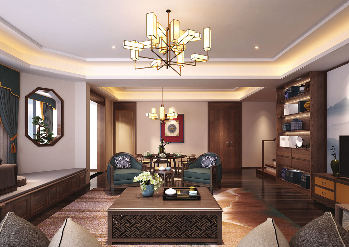 新中式風格不是純粹的元素堆砌而是通過對傳統文化的認識,將現代元素和傳統元素結合在一起以現代人的審美需求來打造富有傳統韻味的事物。